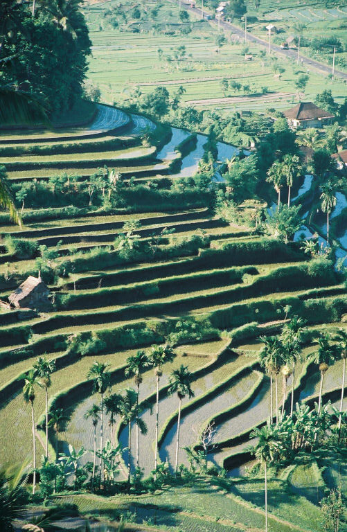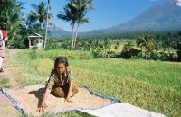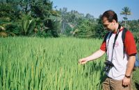 Andy examines a field of padi bali Bali's indigenous rice. Largely replaced by modern rice hybrids because of their shorter harvest cycles, padi bali is getting quite rare on the island.