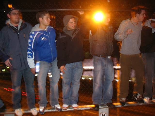 Crowds climb atop the railing of the overpass leading towards Fenway.