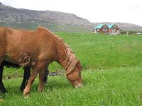 A short walk from Geysir's hot springs, we stumbled upon a small farm with several Icelandic horses. The Icelandic horse is unique to the island -- a short, stocky workhorse brought over by the Vikings. Like their diminutive distant cousins, Shetland ponies, Icelandic horses are smaller than continental breeds due to the confined nature of island life. Originally a larger breed, the Icelandic pony evolved to its current size during the centuries of isolation on the island.